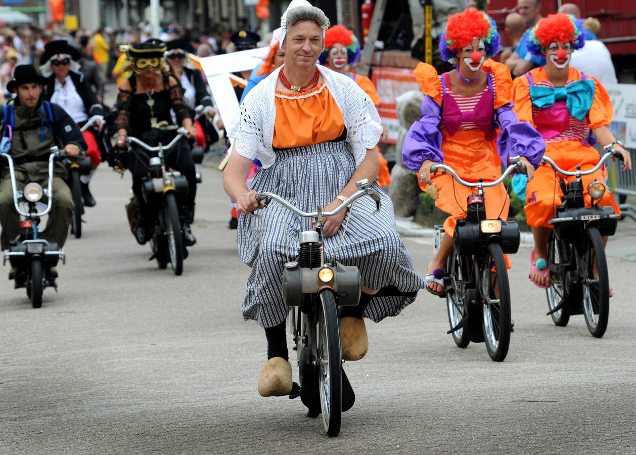 Hierin rijden traditiegetrouw de meest originele creaties mee, wat dit evenement een heus carnaval op de solex maakt.